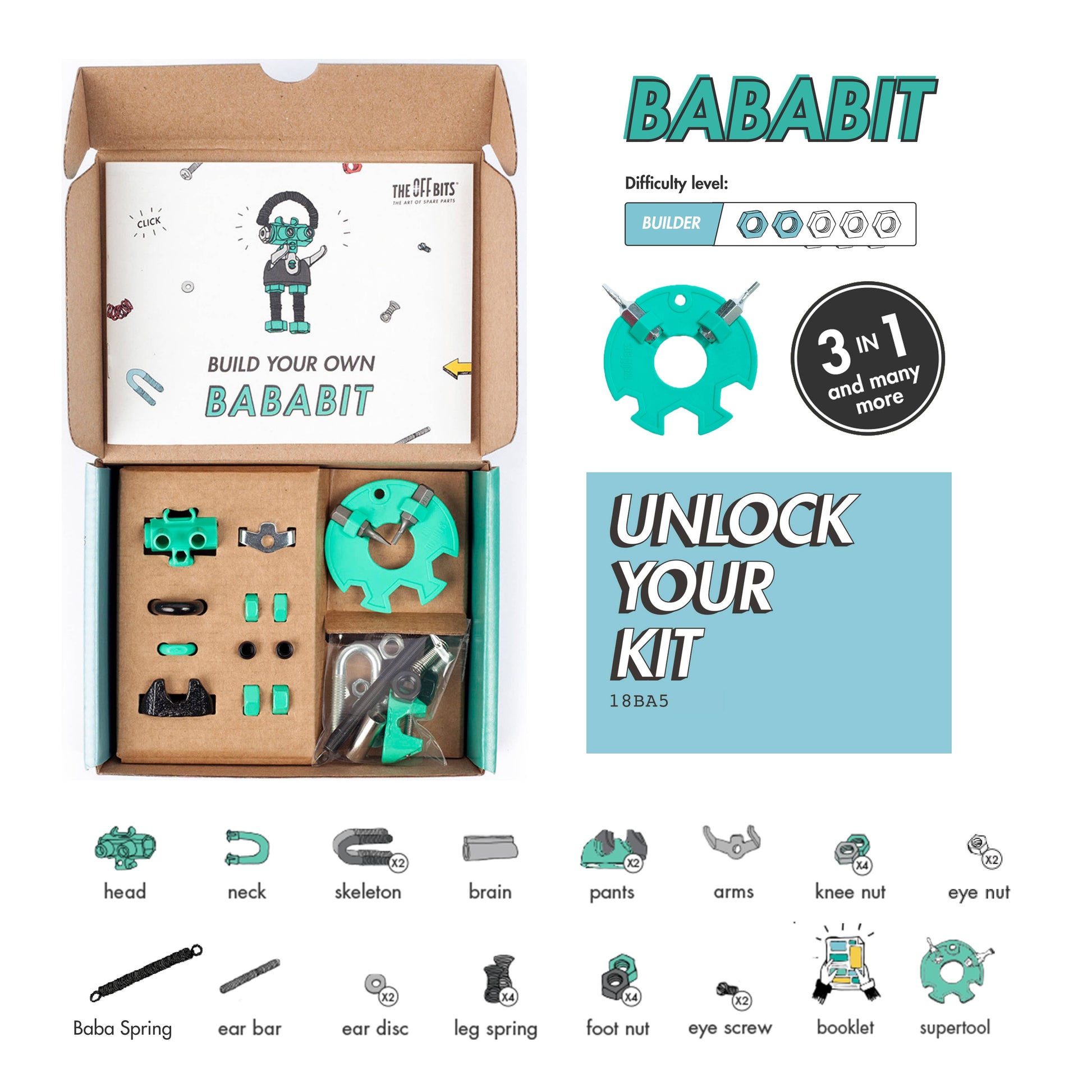 BabaBit combines classic spare parts with modern design to create a fun, educational robot-building experience.