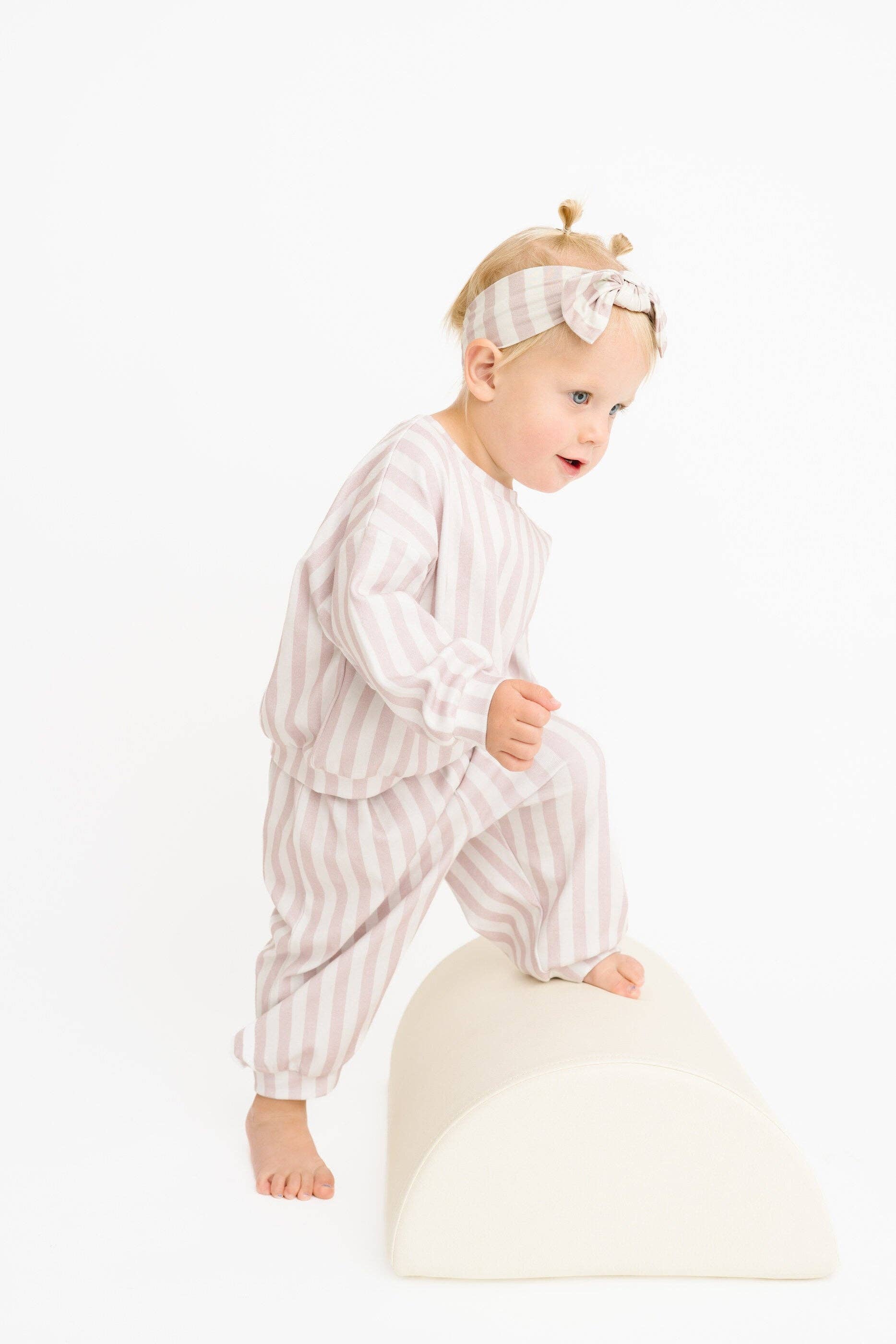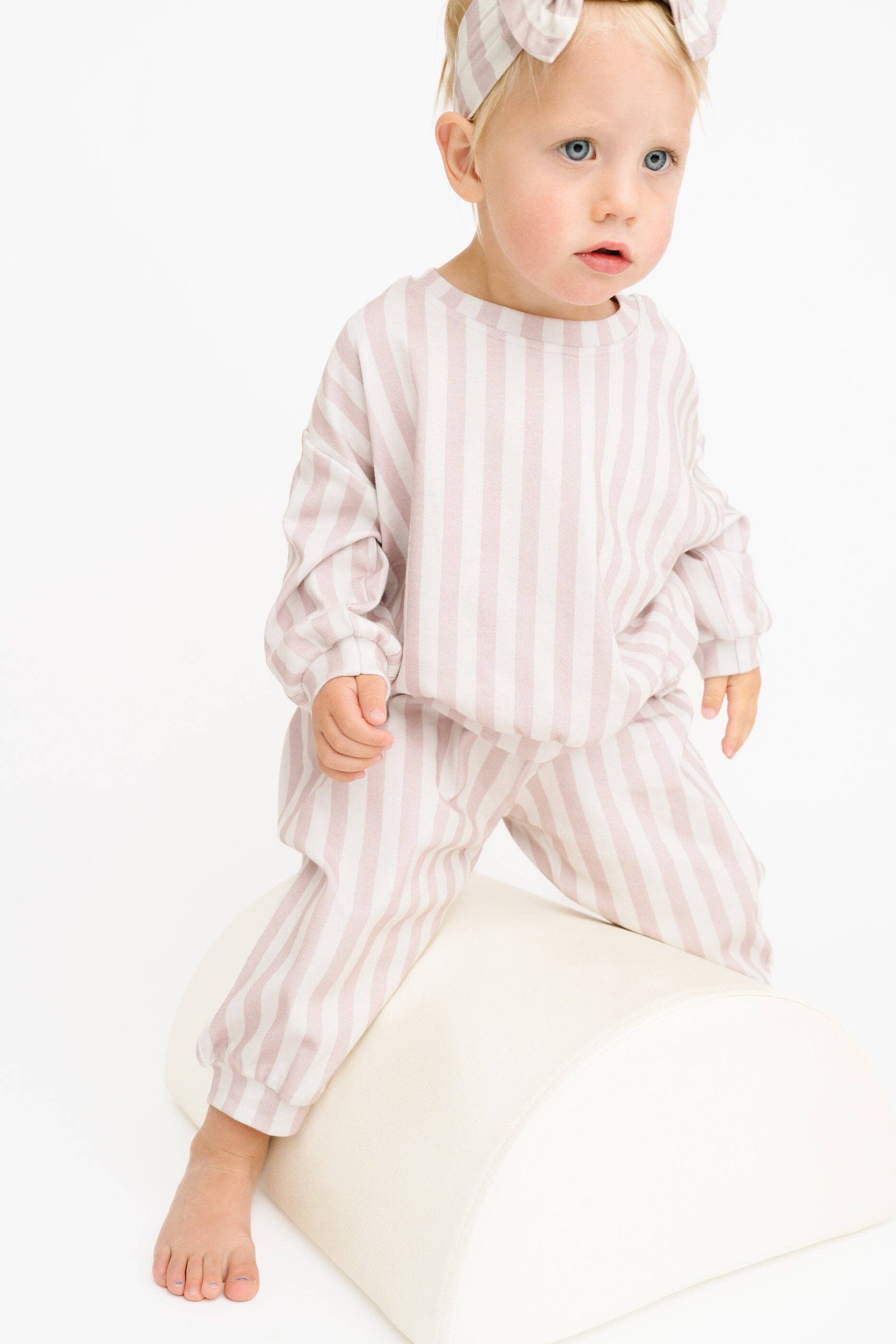*This cozy, lightweight set includes a dusty rose stripe sweatshirt and matching pants, designed for ultimate comfort and style.