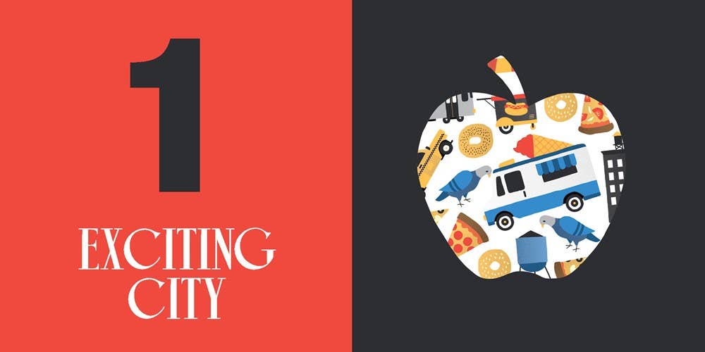 Covering everything from subway cars to taxi cabs, bagels to hot dog carts, this bright board book makes learning about New York City fun. Illustrator Nicole LaRue’s charming, modern style depicts iconic Big Apple symbols for toddlers to count.