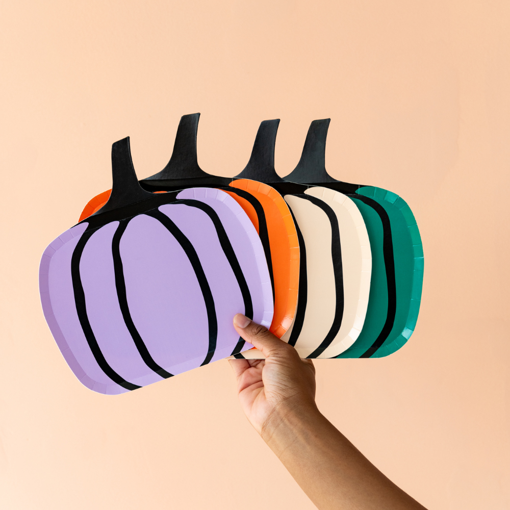 These plates feature a playful pumpkin design in 4 fearsome colors, perfect for your Halloween party. Serve up your favorite treats with a touch of whimsy and magic. (No spells required!)