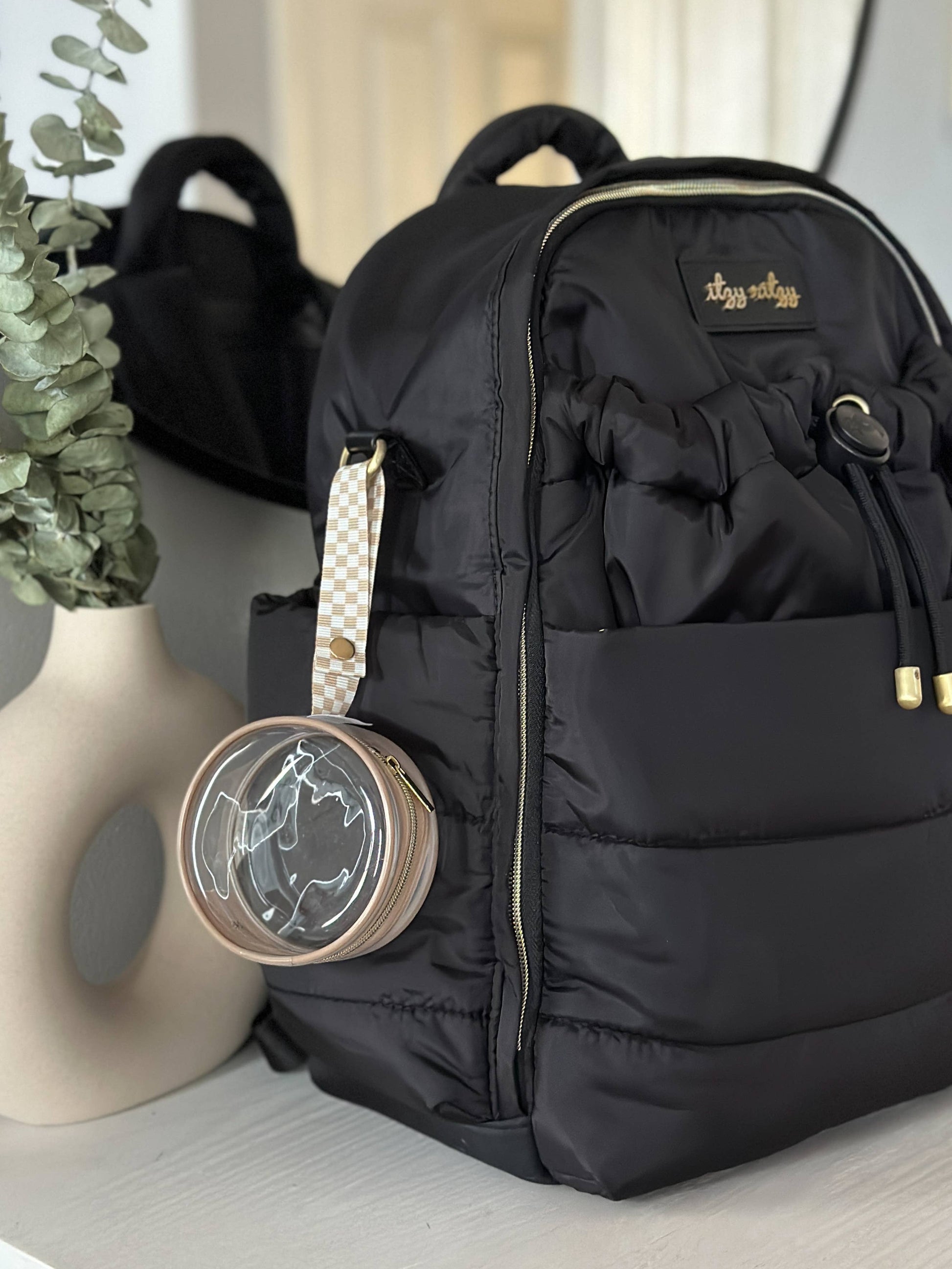 The clear winner in paci storage! The multi-use Itzy Paci Case™ attaches onto your diaper bag, purse, or travel bag to keep essential parenting items in clear view.