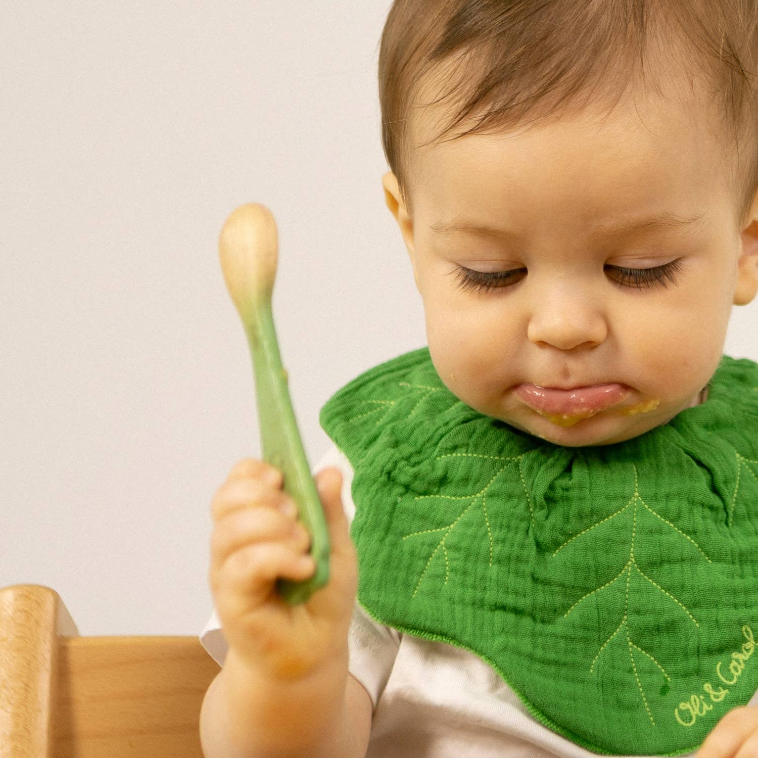 Perfect for early stages, this set includes two spoons handcrafted from Hevea wood—giving a second life to the trees that once made our rubber toys.