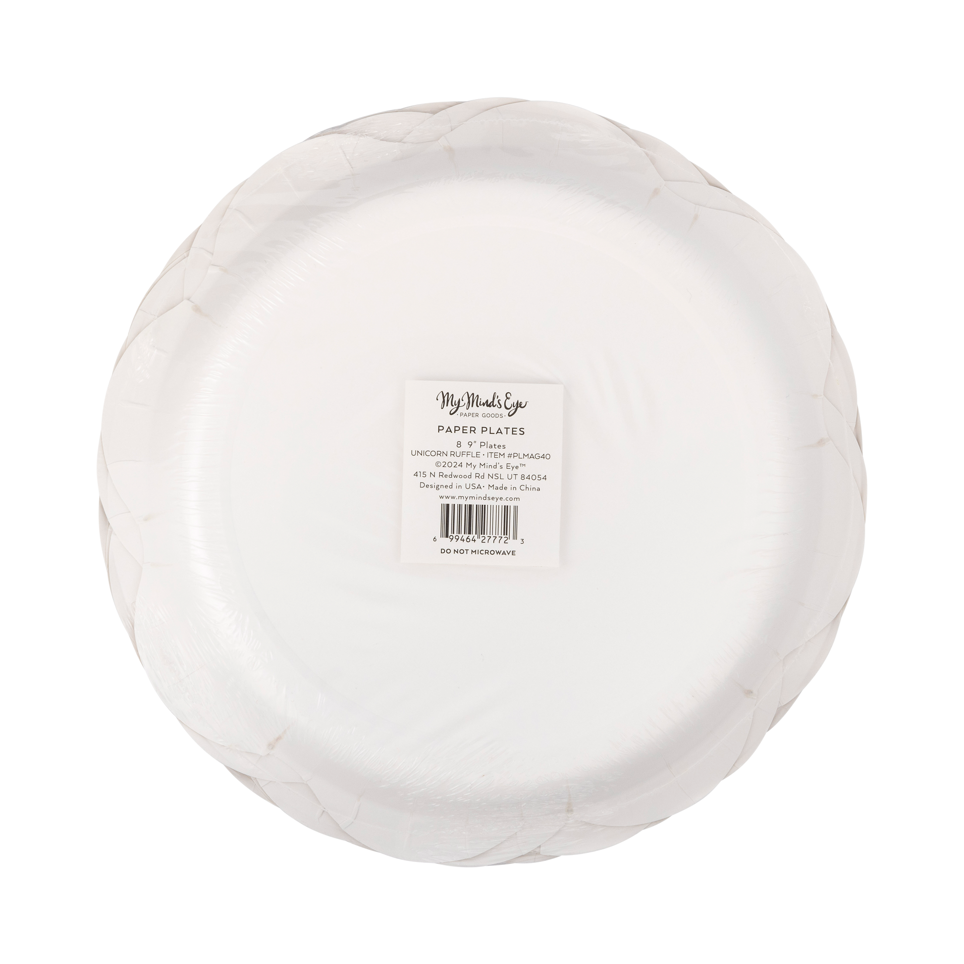 This quirky plate features a majestic unicorn design and fun ruffle edges, perfect for adding a touch of whimsy to any party. Be the talk of the town with this unique and playful piece.