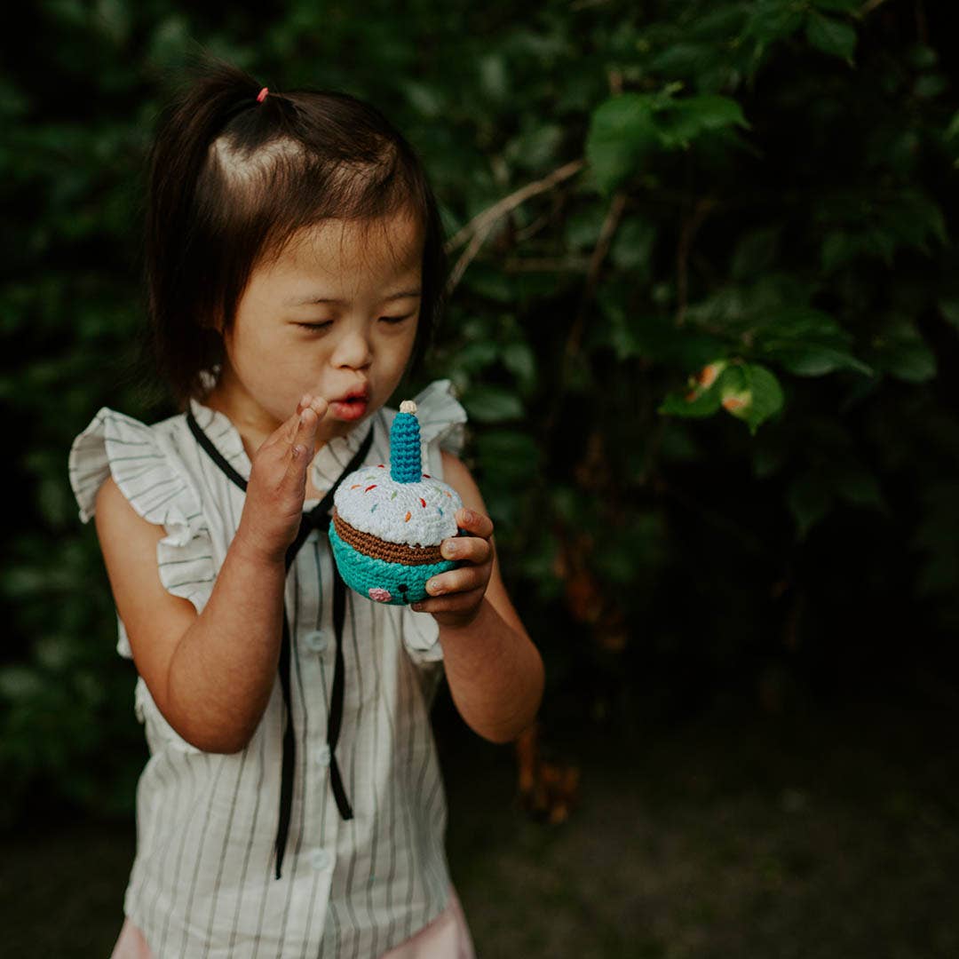 Handmade with buttery cotton yarn, it has a soft rattle inside that jingles when shaken. Perfect for hours of pretend play, this adorable cupcake rattle makes for a great add on to baby's first birthday gift or any tea party.