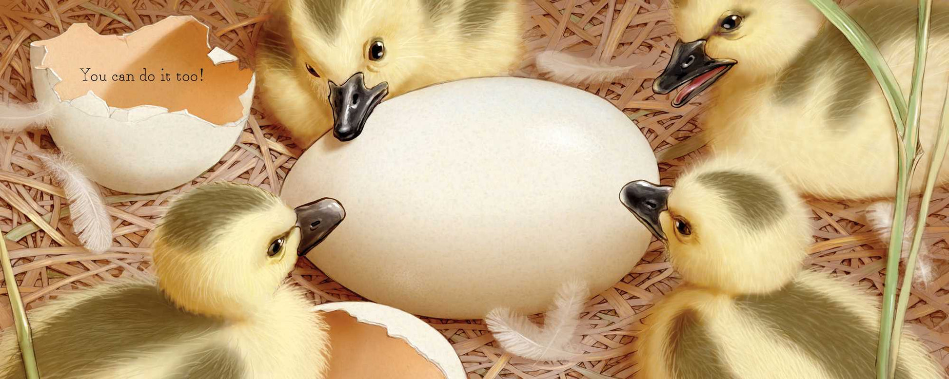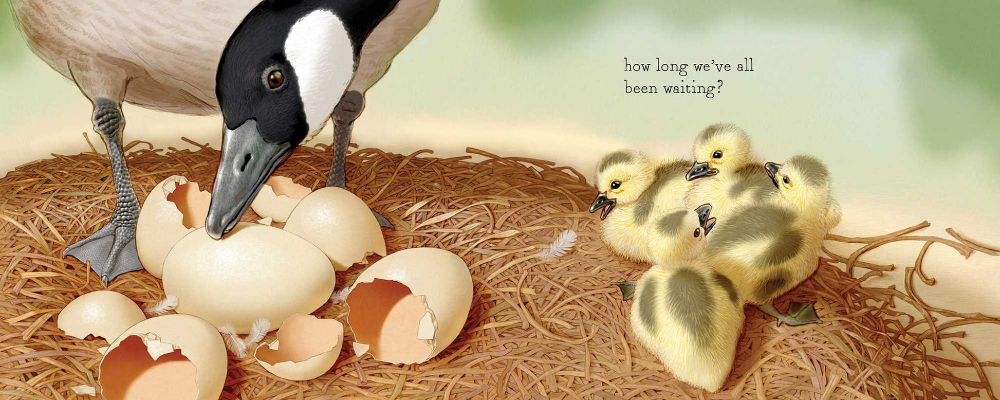 It’s springtime, and the pond is bursting with new life. There are beaver pups, heron hatchlings, and lots and lots of ducklings. Everyone is out and about, swimming, flapping, chirping, and quacking—except for one family of geese. When, oh when, will their last little one break on out and join the waiting world?