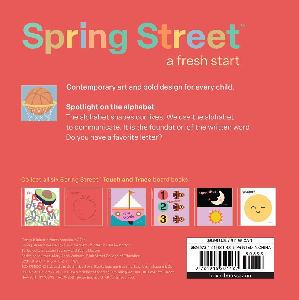 Touch and trace the letters from A to Z in this this stylish, design-led board book. See the alphabet reflected in the world around you from avocado to zebra. Children's Board Book; 7 x 7 inches; 20 pages.