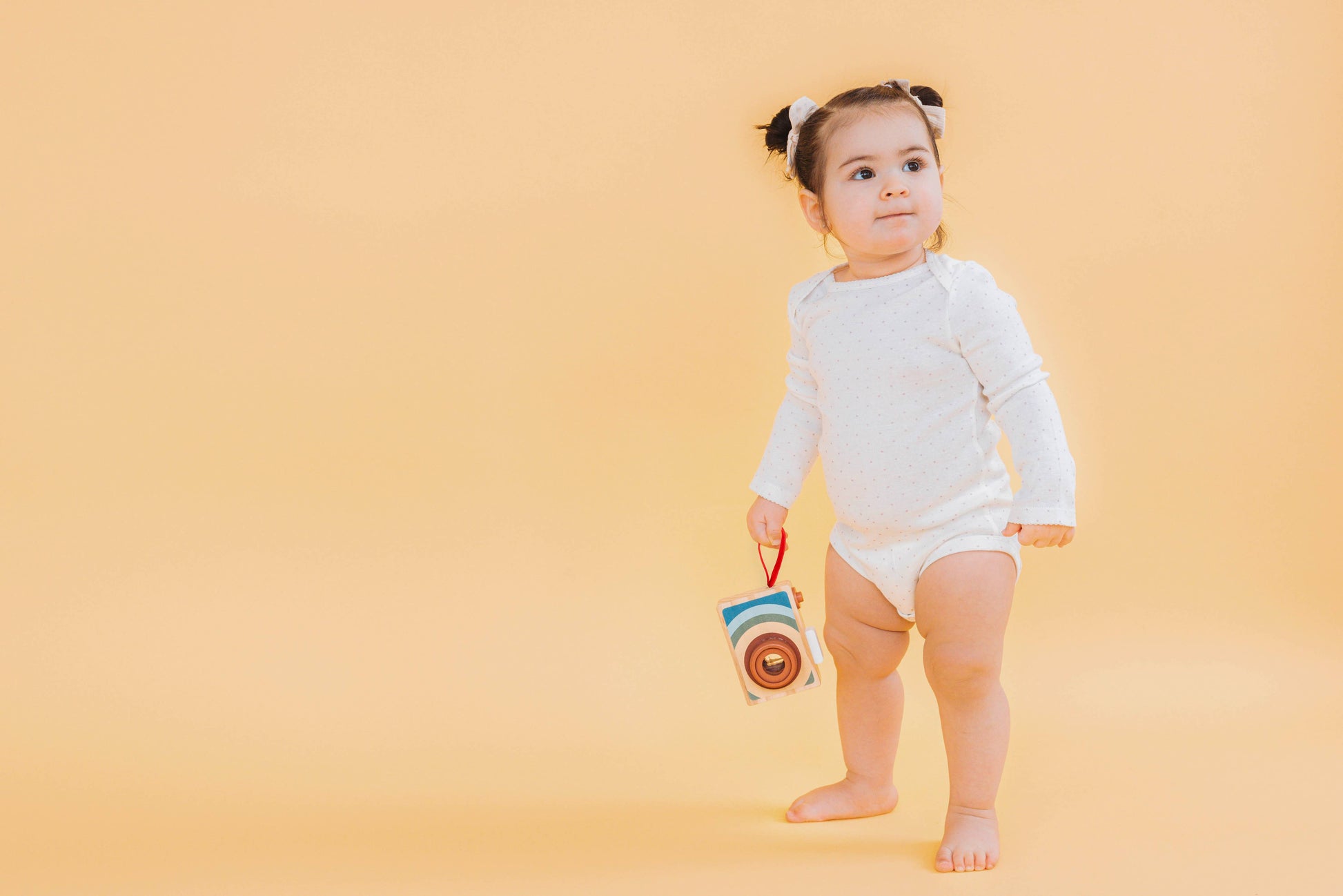 Montessori pretend play camera: Inspire imagination and creativity with this realistic wooden toy camera featuring a movable click button and lens for hands-on, sensory play that encourages observation and storytelling.